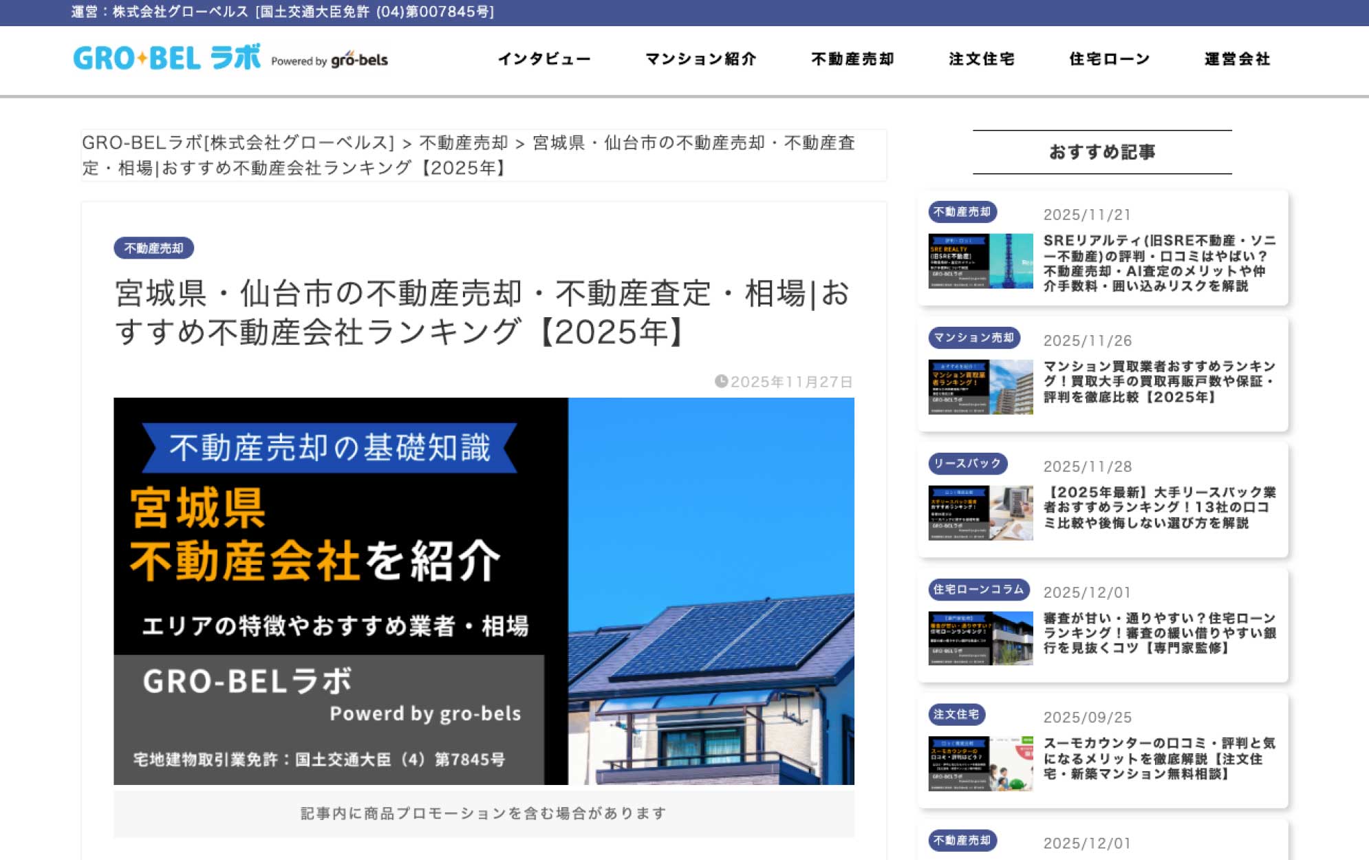 株式会社グローベルス様が運営する不動産情報サイト「GRO-BELラボ」にて、